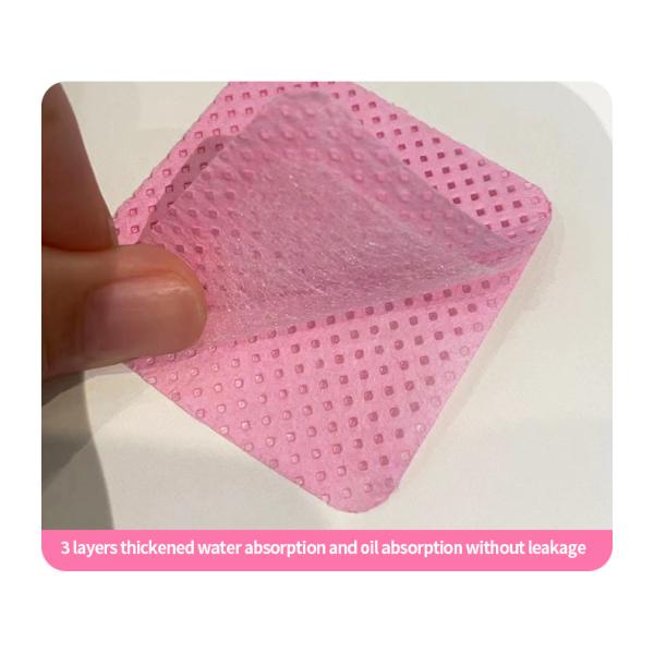 The nail wipe is made of meltblown, spunlace and meltblown nonwoven to remove nail glue and eyelash glue, and clean nail tools. 3 layer structures, MSM, to make sure that wipe lint-free and no glue leaking.